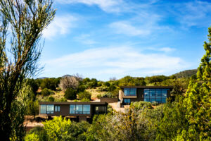 The construction efforts were carefully planned to preserve the existing topography and vegetation to the greatest extent possible. Taking cues from the planning and construction of American Indian ruins found throughout the desert Southwest, the project honors the site, respects the power of the sun, and explores the meaning of complex geometries overlaid on the steeply sloping landscape.