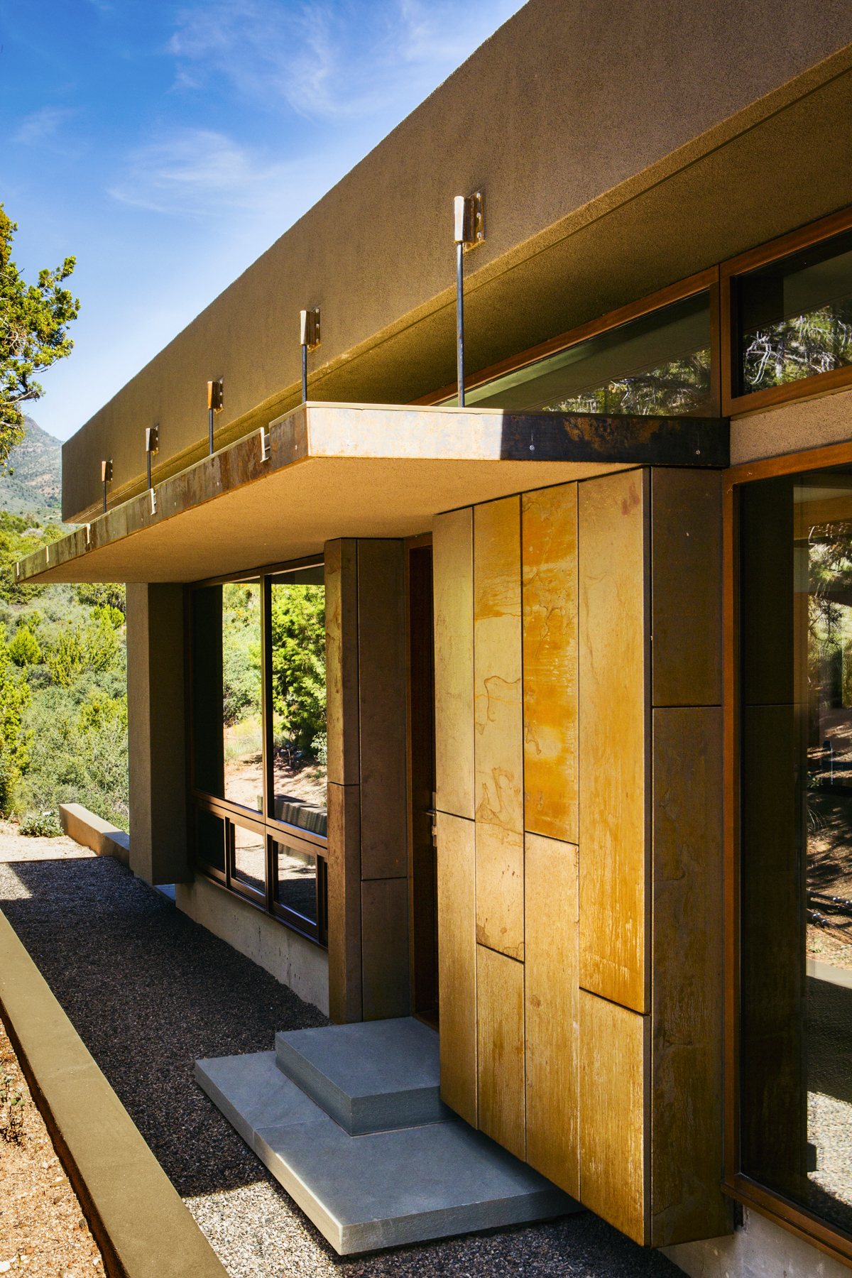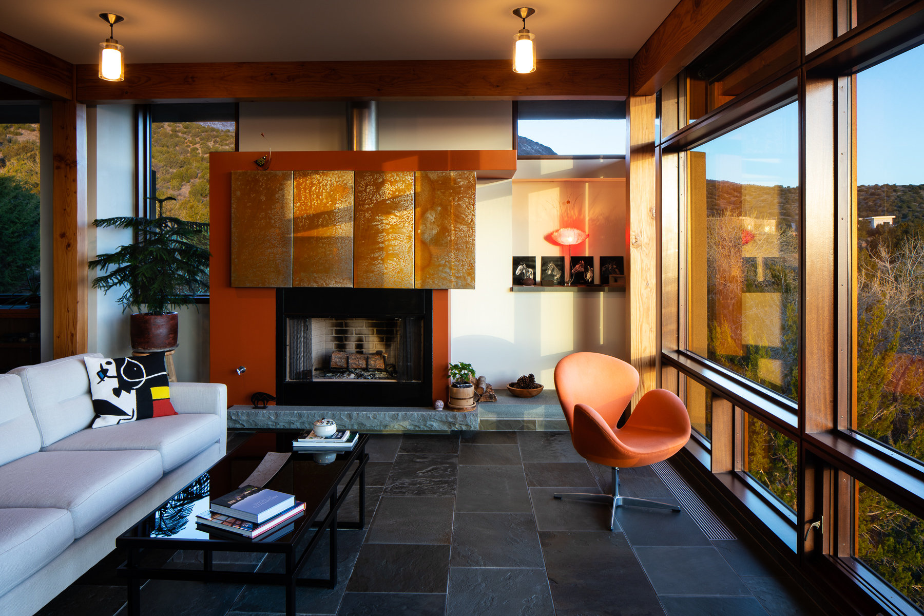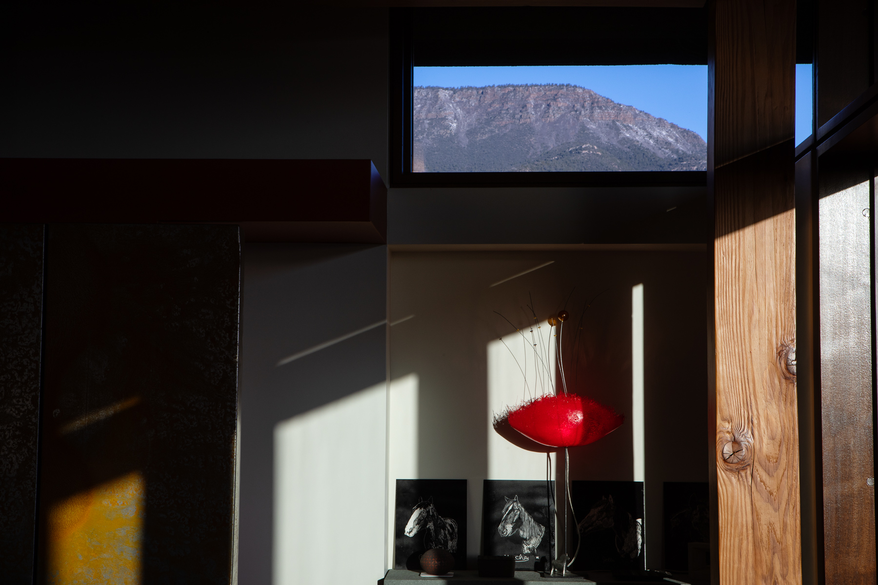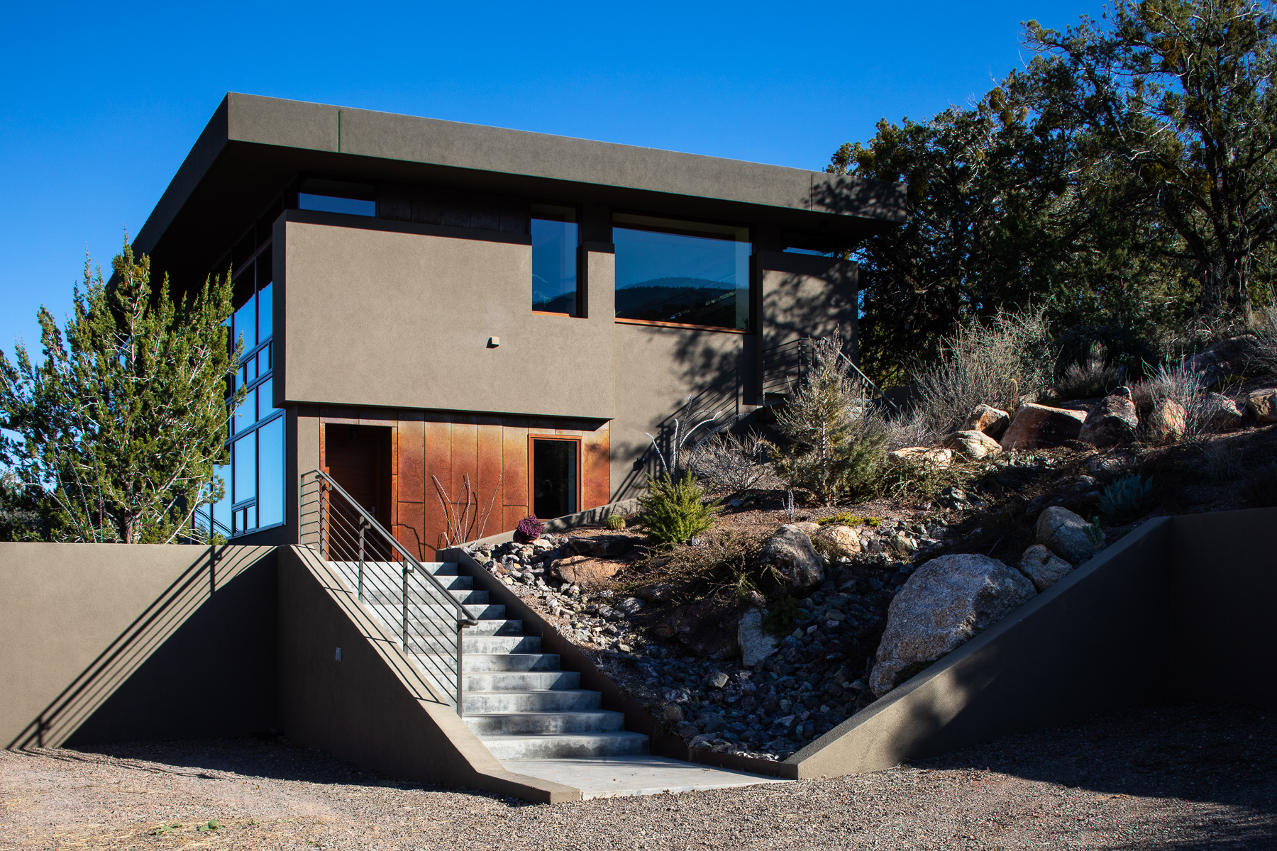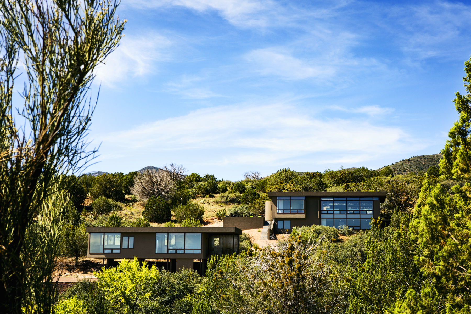 Situated in the foothills of Mingus Mountain, the house is nestled into the high end of 2.6 acres with expansive valley and mountain views. Envisioned as a series of elements rising and falling with the topography, the main house is reached through a series of terraces carved into the hillside.