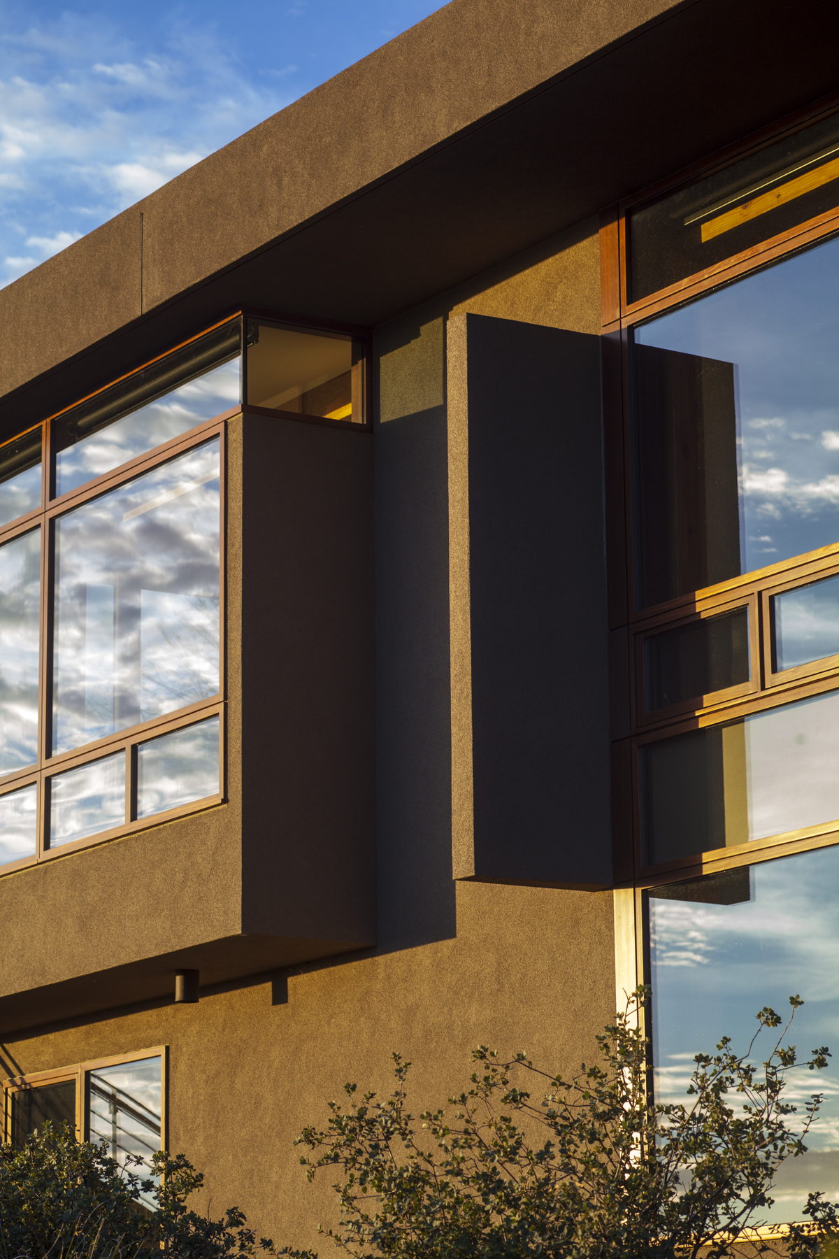 The construction efforts were carefully planned to preserve the existing topography and vegetation to the greatest extent possible. Taking cues from the planning and construction of American Indian ruins found throughout the desert Southwest, the project honors the site, respects the power of the sun, and explores the meaning of complex geometries overlaid on the steeply sloping landscape.