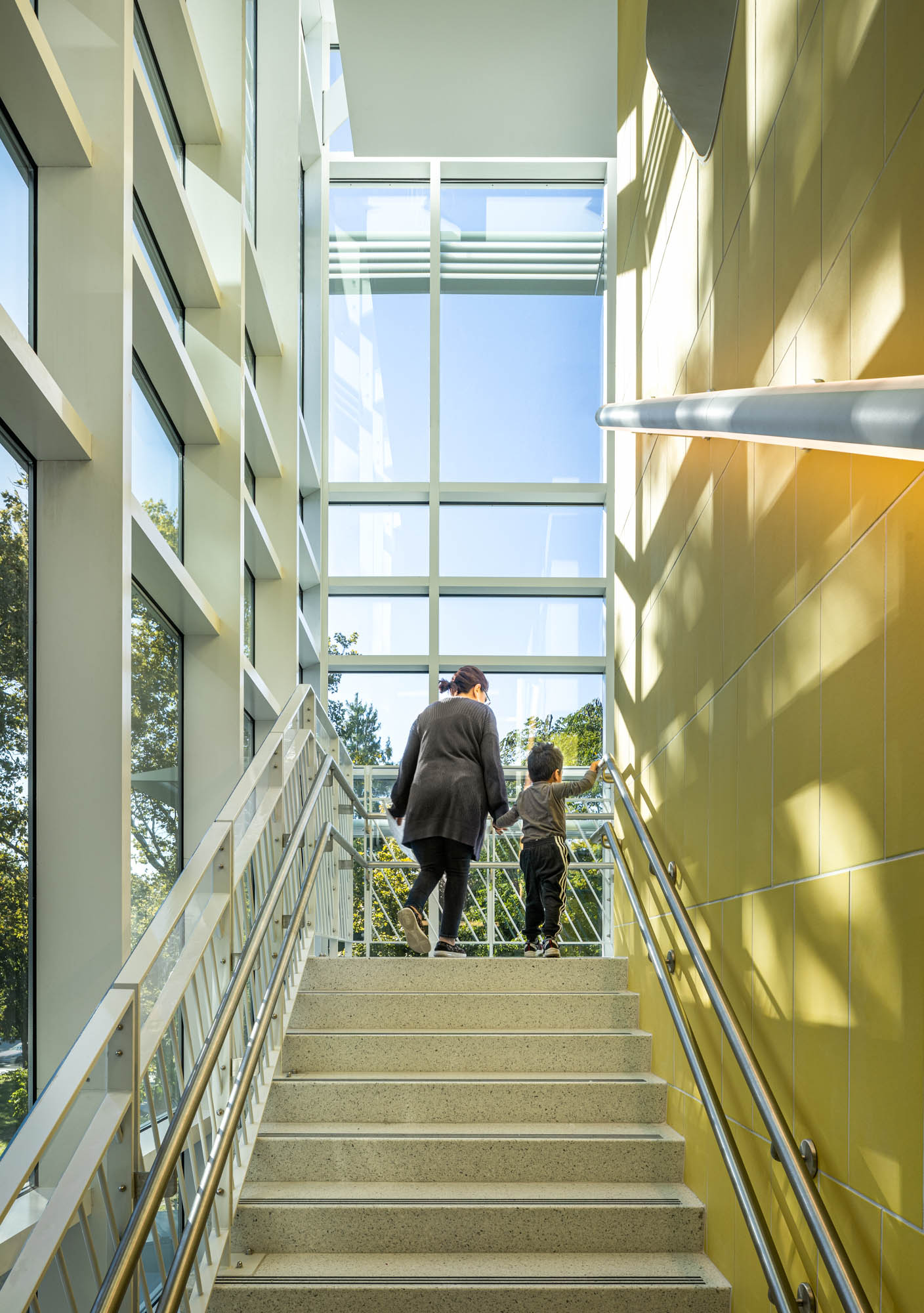 - Glass enclosed main stair provides views to play areas and park and makes a connection to the Hall of Science.