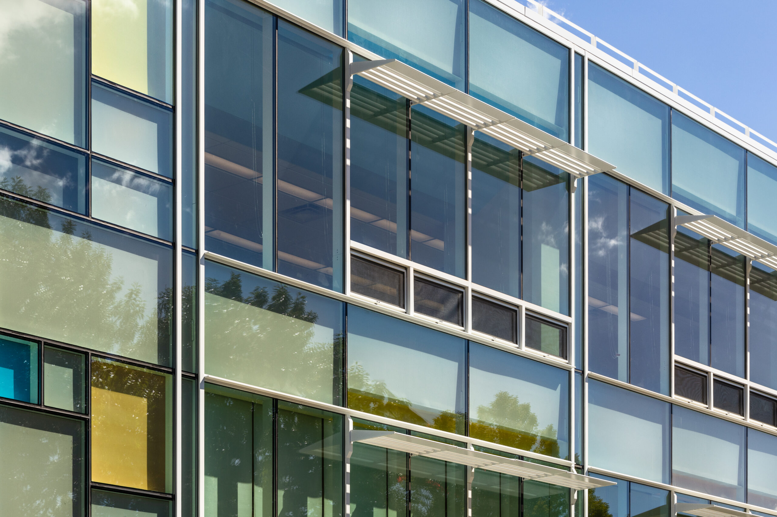 - Expansive glass surfaces with shade control permit significant natural light to interiors.